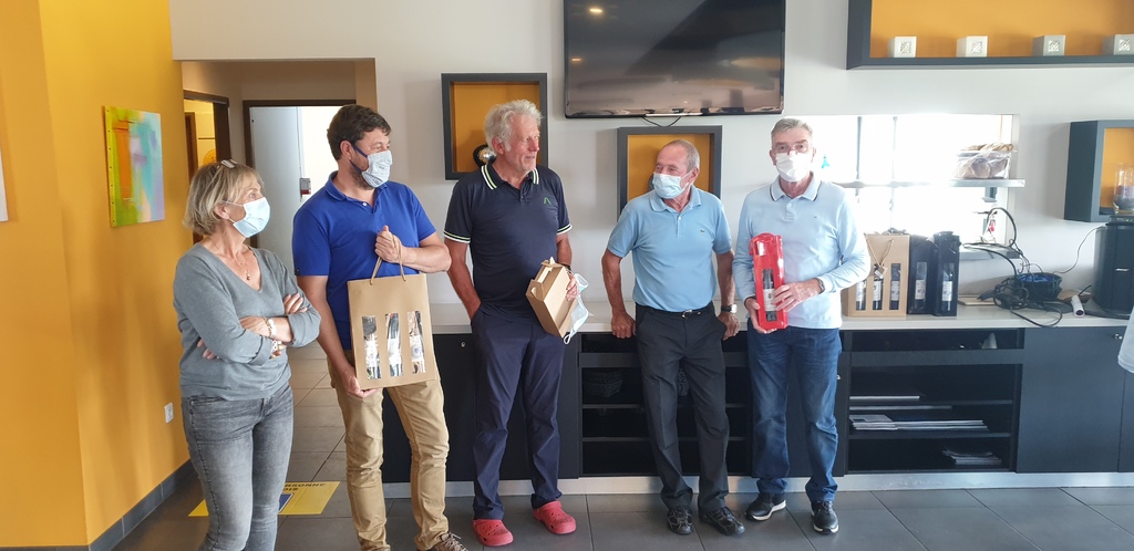 Le dieu Bacchus veillait sur la réussite de la Coupe " CHATEAU BELLECOMBE 2021" . Une nouvelle remise des prix conviviale et joyeuse et ce quelquesoit le score. Merci à Jean-Marc CARTERON partenaire de votre association depuis 2015.