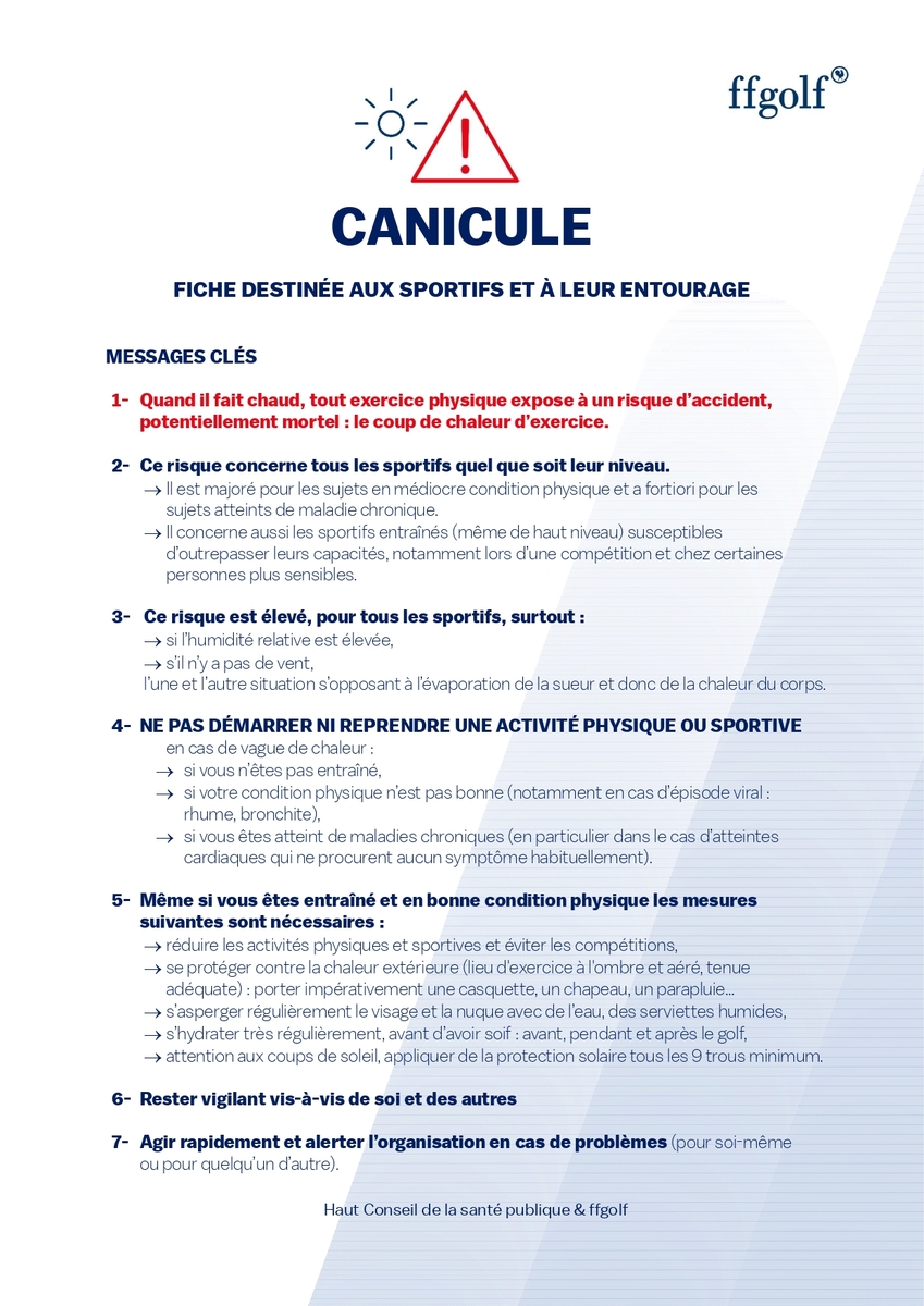 Information canicule. Fiche destinée aux sportifs et leur entourage